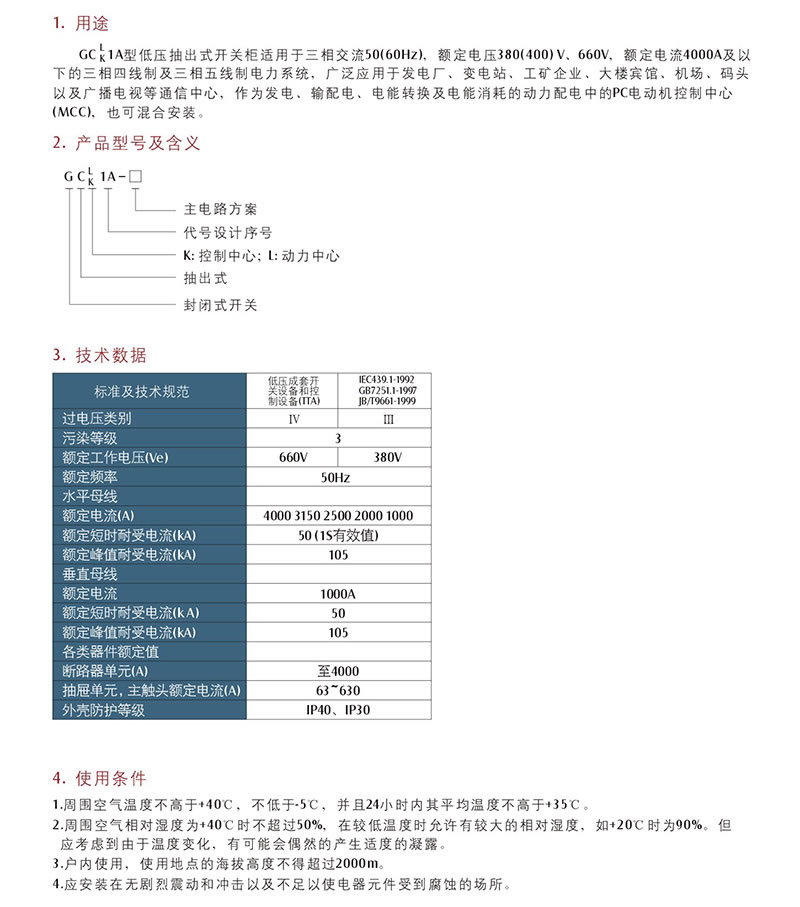 GCK、GCL1A系列低壓抽出式開關(guān)柜